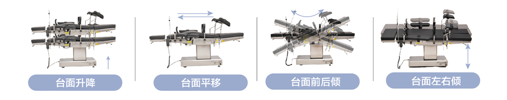 01.臺面升降、臺面前后傾、臺面左右傾、床體平移采用電動裝置控制;